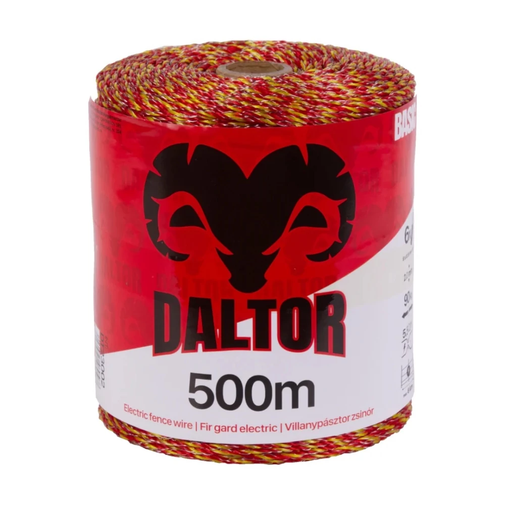 Fir gard electric DALTOR BASIC 500 m, 6 lite, 90 kg – fir rezistent și conductiv, ideal pentru garduri electrice de până la 6000 m. Cu 6 inserții metalice din oțel inoxidabil, rezistență la rupere de 90 kg și diametru de 2 mm, asigură protecție sigură și durabilă. Prezentul articol Fir gard electric DALTOR BASIC 500 m 6 lite 90 kg, este alegerea perfectă din categoria Conductori pentru gard electric, ceea ce înseamnă de asemenea Confort prin instalații de calitate | Melinda Instal |
