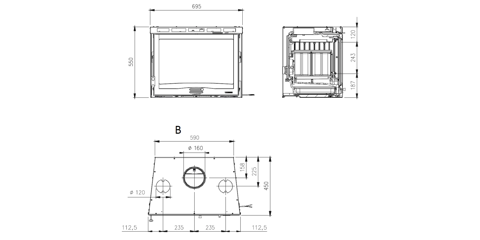 | Diametrul racordului la coș (mm) | 160 |