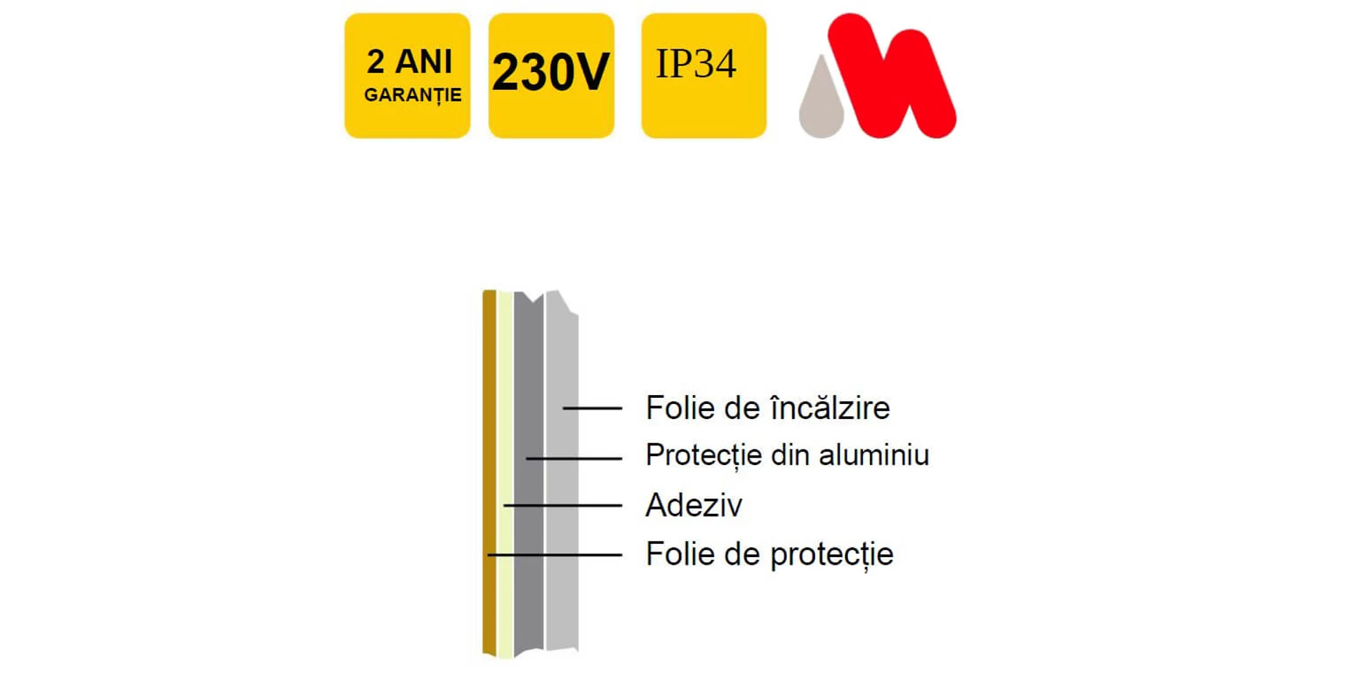 - Folie de încălzire cu auto-adeziv pe spate.