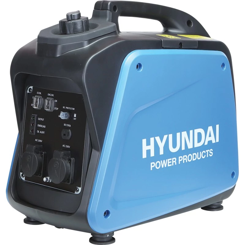 Generatorul de curent tip inverter, HY2000XS, HYUNDAI face parte din gama de generatoare tip inverter care produc curentul printr-o metodă particulară. Alternatorul produce un curent alternativ care prin intermediul unui modul electronic este transformat în curent continuu și apoi iarăși în curent alternativ, dar foarte bine filtrat astfel încât la priză să nu avem fluctuații de tensiune și frecvență. Aplicațiile acestor echipamente sunt diverse, de la camping la consumatori care nu permit fluctuații de tensiune - de exemplu aparatură medicală mobilă, laptop-uri, compresoare de aer etc. Este acționat de un motor cu pornire ușoară în 4 timpi de 2 CP, motorul XY152F-2, produce 2 kW și este mai mult decât capabil să alimenteze televizoare, compresoare de aer mici pentru paturi gonflabile, încălzitoare electrice, laptopuri, lumini etc.