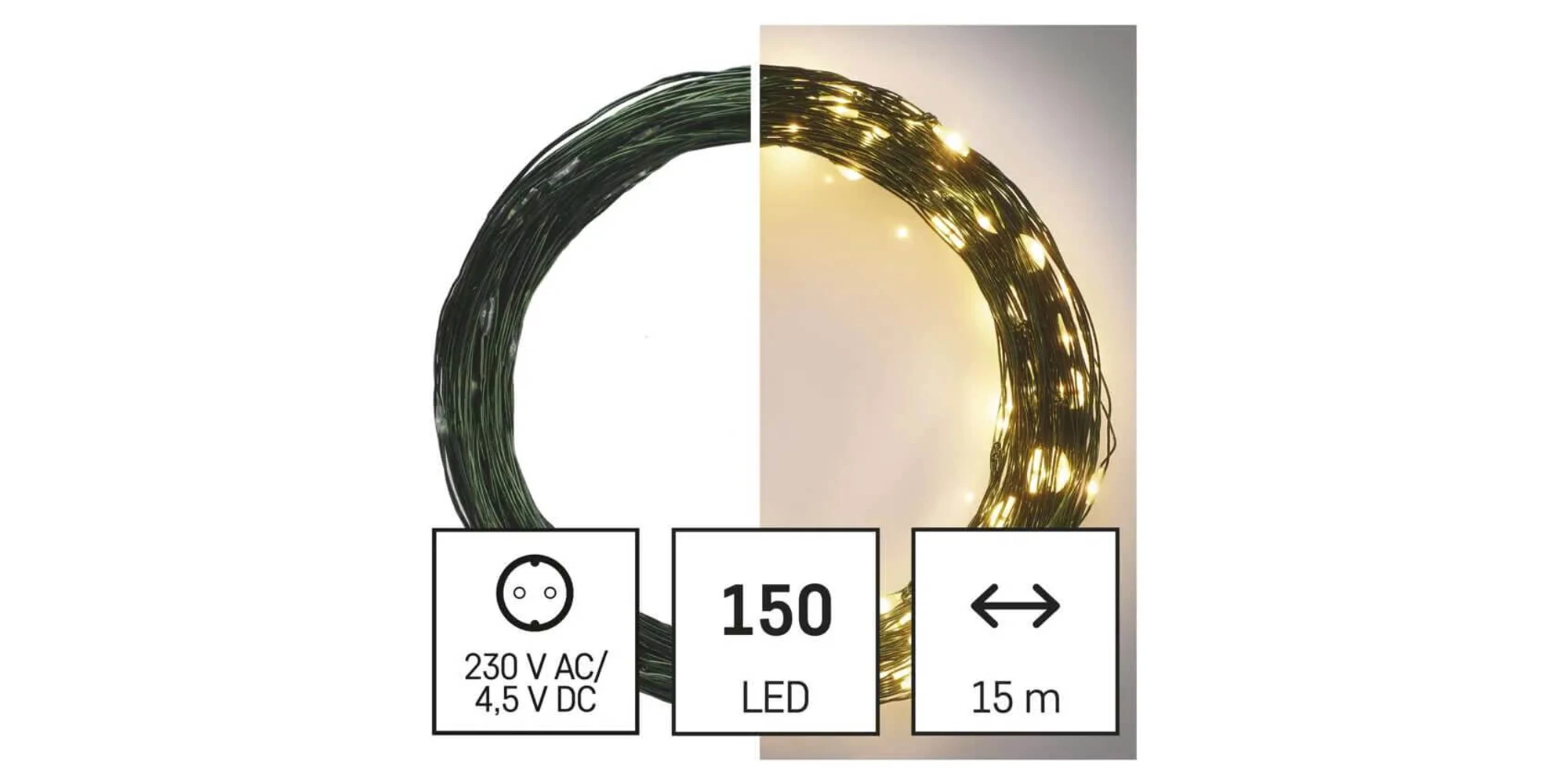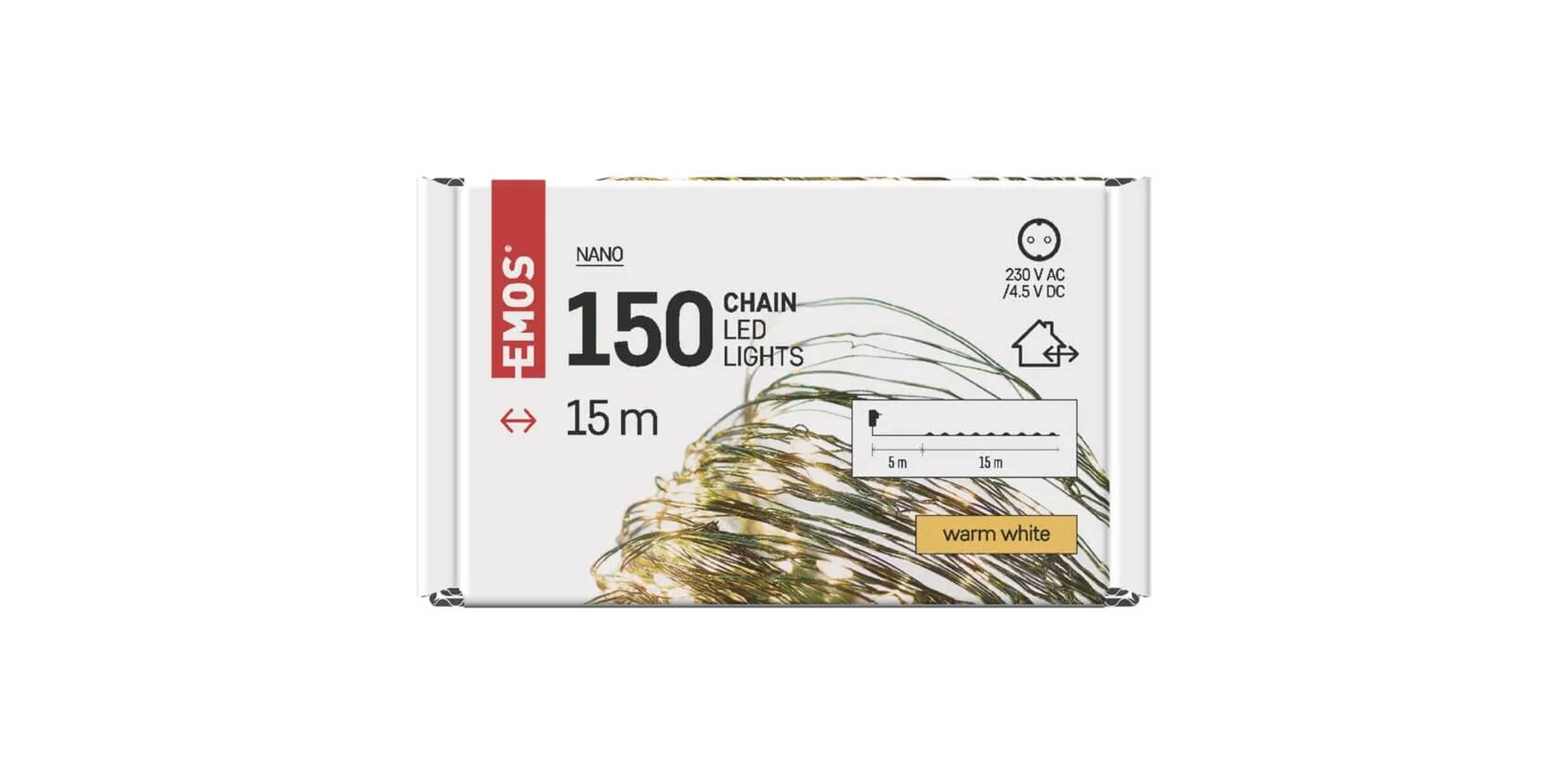 Ghirlanda luminoasa de Craciun cu 150 LED-uri nano, alb cald, 15 m, exterior si interior, timer, D3AW05, EMOS | 62930203 | 43,40 Lei | Decoratiuni de Craciun | Confort prin instalații de calitate | Melinda InstalSpecificații tehnice