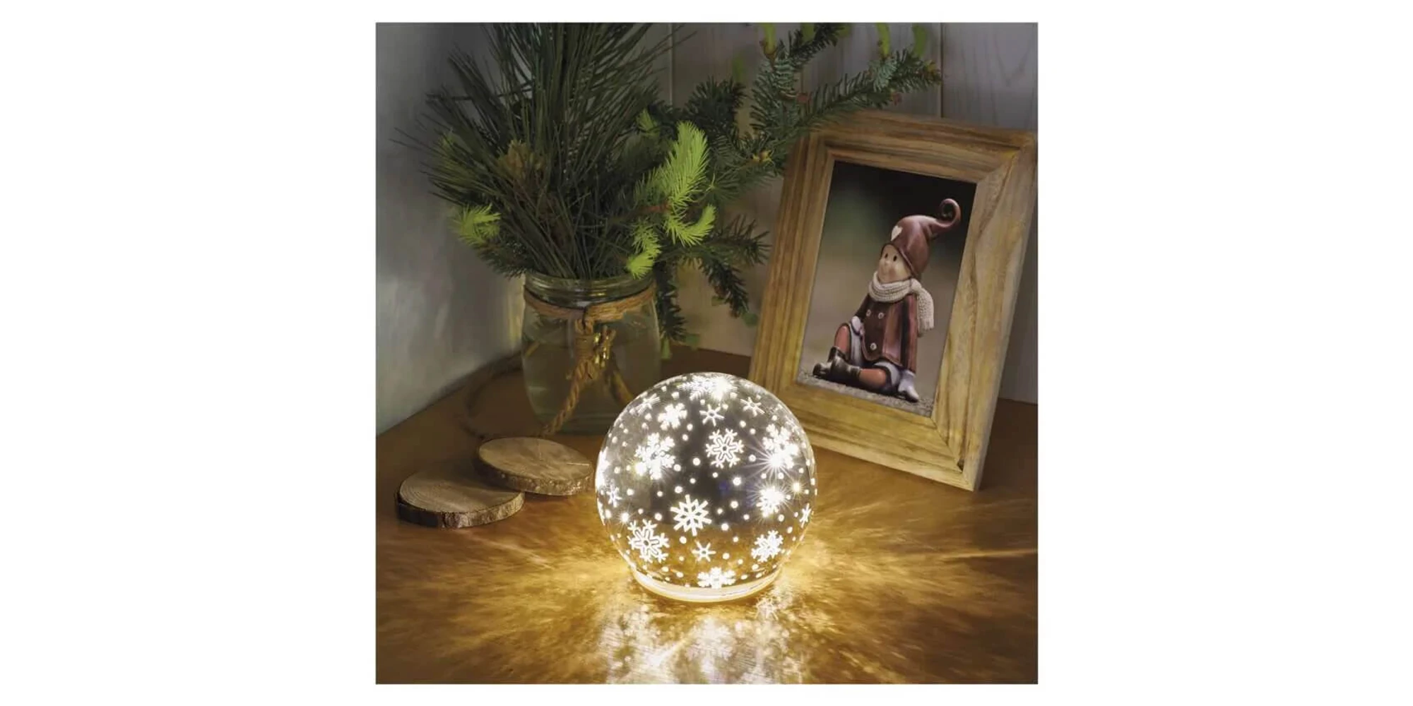 Cu o înălțime perfectă de 12 cm, acest glob de sticlă este potrivit pentru utilizarea în interior și se remarcă prin iluminarea delicată cu LED-uri de culoare alb cald, oferind un ambient plăcut și relaxant. Culoarea luminii contribuie la crearea unei atmosfere primitoare și festive în orice încăpere în care este plasat.