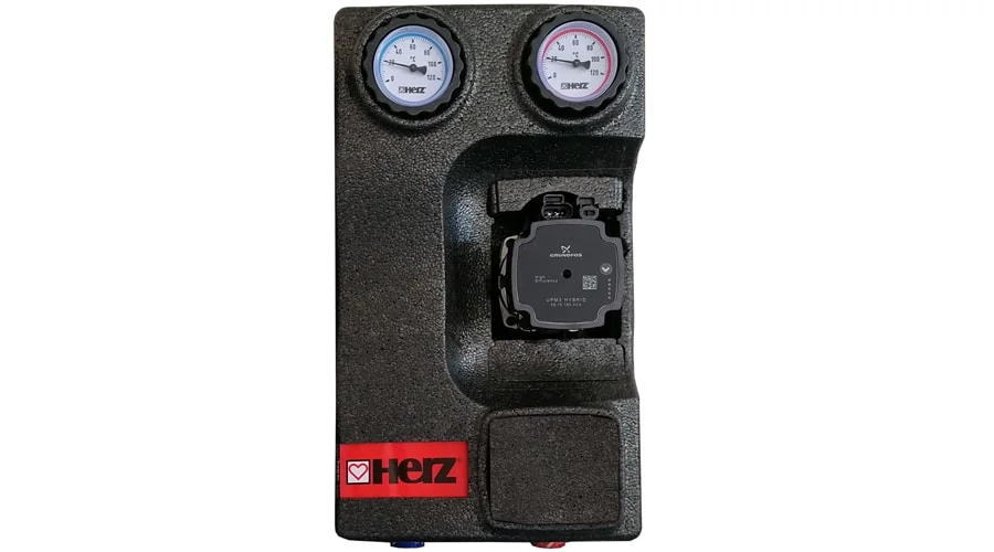 Grup pompare Pumpfix DIRECT, DN25 HERZ, cu pompa GRUNDFOS 71, UPM3 Hybrid 25-70 180 este ideală pentru sistemele de încălzire rezidențiale.