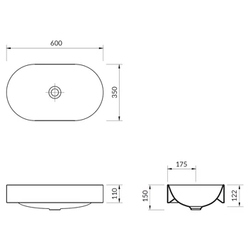 Lavoar montat pe blat, oval, 60 cm, Inverto, CERSANIT K671-009