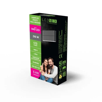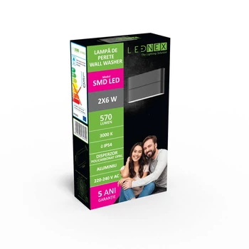 Lampa de perete LED dreptunghiular, 2 x 6 W, 570 LM, IP54, LEDNEX