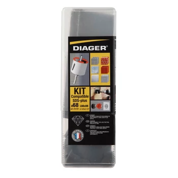 Trusa carote pentru electrician 5 piese, Ø 68 + adaptor compatibil SDS-plus L100 mm + burghiu de cenreare + piatra de ascutit DIAGER