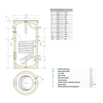 Boiler indirect cu 1 serpentina, 500 litri, montaj pe pardoseala, izolat, EV 15S 500 75, Tesy