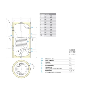 Boiler indirect cu 1 serpentina 200 litri montaj pe pardoseala izolat EV 9S 200 60 Tesy