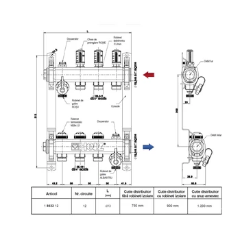 Distribuitor din inox pentru instalatii de incalzire prin pardoseala DN 25 – 12 x 3/4”, HERZ 1863212
