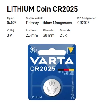 Baterie rotunda cu litiu 3 V, CR2025, VARTA Lithium