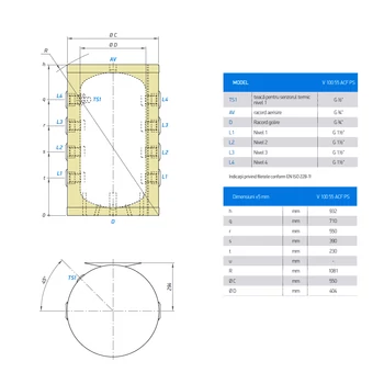 Rezervor tampon pentru instalatii de racire activa, fara schimbator de caldura, V 100 55 ACF PS, 305432, TESY