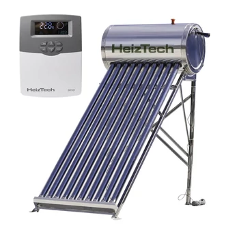 Panou solar 100 litri automatizat nepresurizat cu 10 tuburi vidate rezervor si suport otel inoxidabil pentru preparare apa calda menajera controler SR501 HeizTech