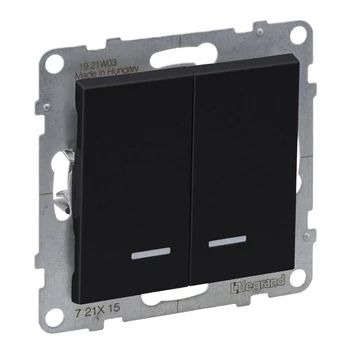 Intrerupator dublu cu LED, 10A, negru SUNO 721415 Legrand