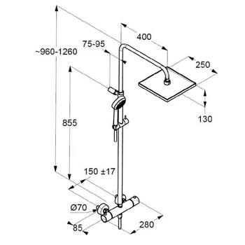 Sistem de dus dublu, cu baterie termostatica, 6809805-00, LOGO, KLUDI