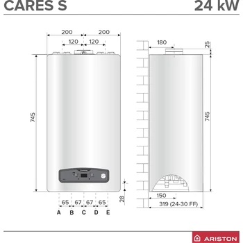Centrala termica murala in condensatie 24 kW, pentru incalzire si preparare ACM, Cares S 24 ARISTON, schimbator caldura otel-inox, cu tubulatura