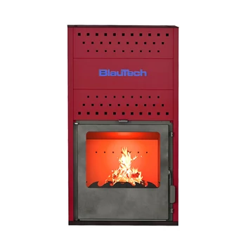 Termoșemineu pe lemne 18.4 kW, pentru încălzire centrală, cu geam termoizolantă, roșu, BT-HIDRO20 R, BlauTech