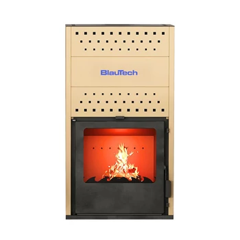 Termoșemineu pe lemne 18.4 kW, pentru încălzire centrală, cu geam termoizolantă, bej, BT-HIDRO20 B, BlauTech