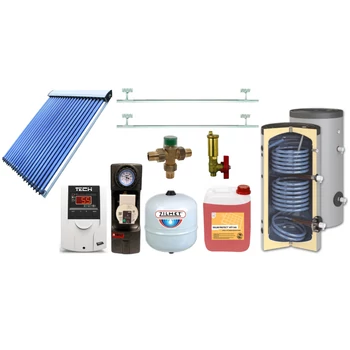 Pachet solar cu colector solar 20 tuburi BlauTech-SOLAR, boiler indirect cu 2 serpentine HeizTech, 200 l, grup pompare Pumpfix SOLAR EASY, controler solar TECH EU-21ND3, vas expansiune, set fixare si accesorii
