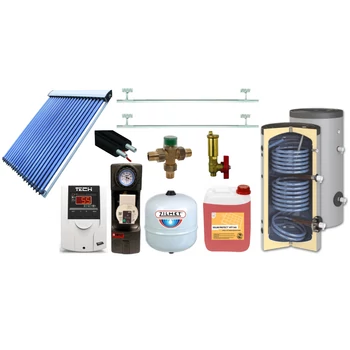 Pachet solar cu colector solar 30 tuburi BlauTech-SOLAR, boiler indirect cu 2 serpentine HeizTech, 300 l, grup pompare Pumpfix SOLAR EASY, controler solar TECH EU-21ND3, vas expansiune, set fixare, tub inox 10 m și accesorii