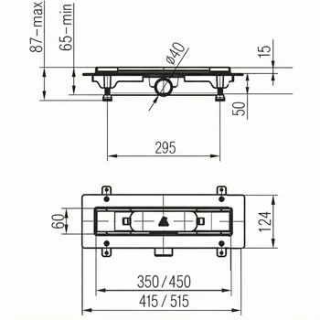 Rigolă de duș liniară, 350 mm, ramă de plastic, grilă inox STANDARD, negru mat, 675022, LIV