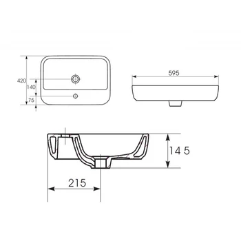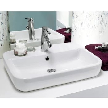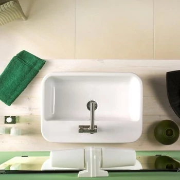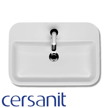 Lavoar Cersanit Caspia, montat pe blat, patrat, alb, 60 cm