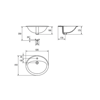 Lavoar Cersanit Calla, incastrat in blat. alb, 54 cm