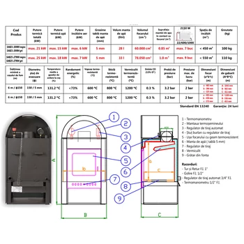 Termosemineu tip centrala 25 kW SAB25 negru cu regulator tiraj
