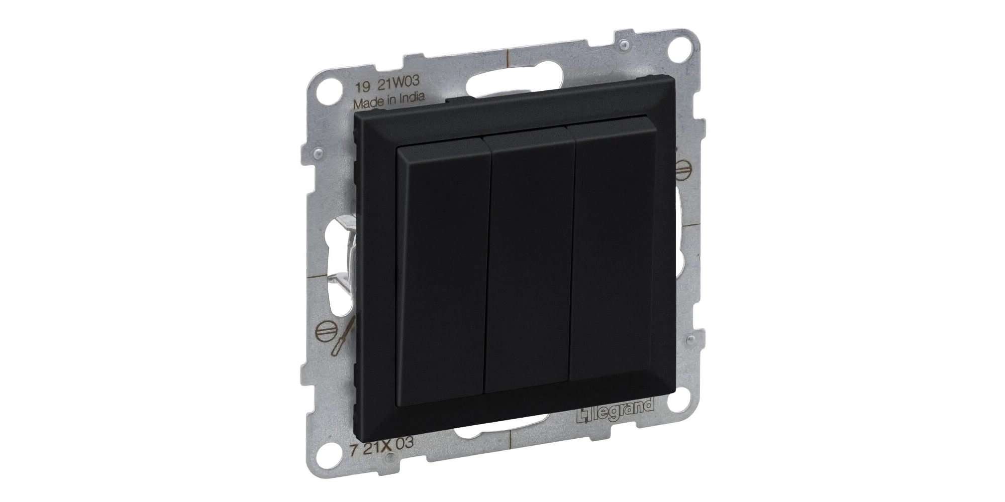 Intrerupator triplu, 20A, negru, SUNO 721403 Legrand | 60410688 | 76,48 Lei | Intrerupatoare, comutatoare | Confort prin instalații de calitate | Melinda InstalSpecificații tehnice