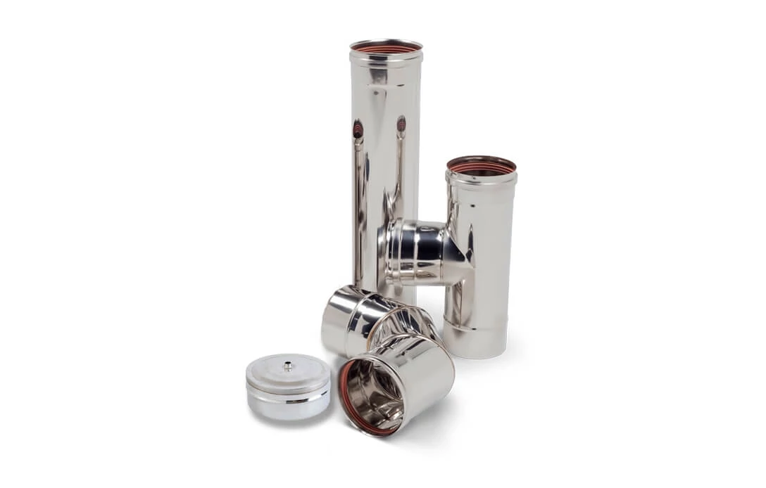Kitul de evacuare gaze arse, inox, pentru cazane pe peleți, de dimensiunea DN120 este compus din elementele: