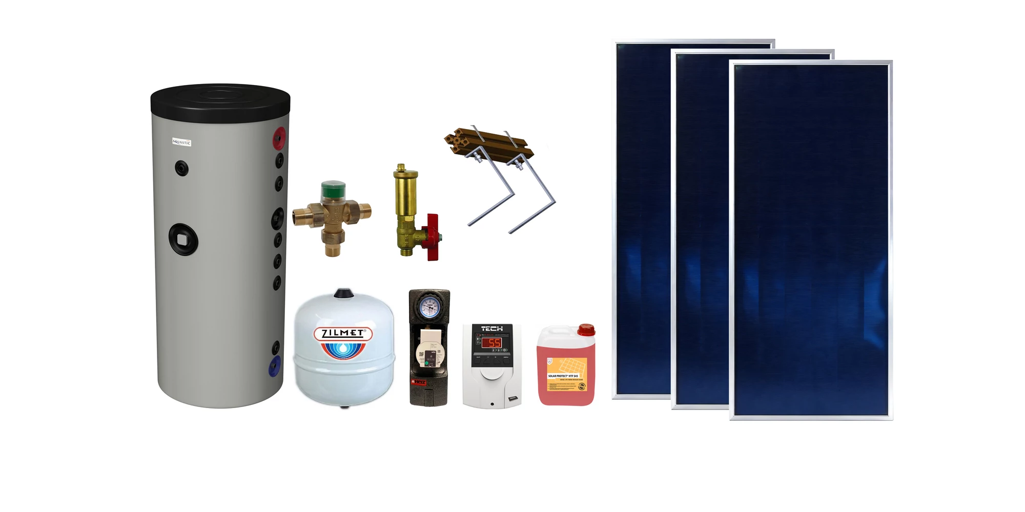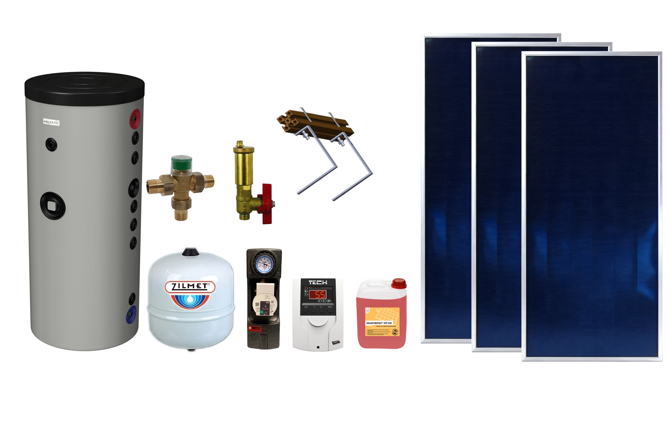 Pachet solar KIT S29, 3 panouri plane 2 mp BlauTech Plus, boiler indirect Hajdu 300l, grup pompare Pumpfix, controler solar TECH, vas expansiune, lichid solar, set fixare