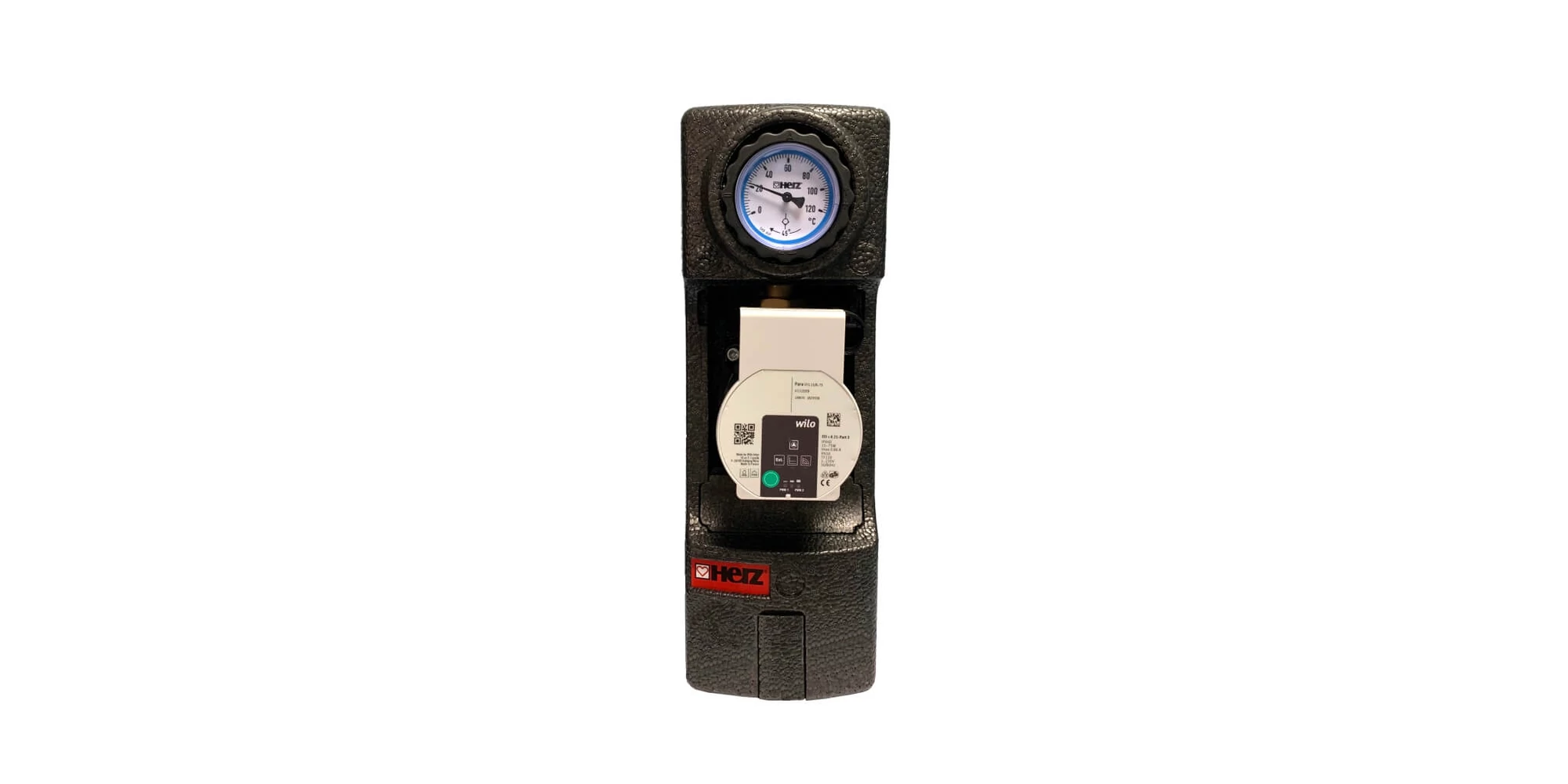 - Pompă: WILO DN20 | Debitmetru: 4–24 l/min | Racord: 1" (sferă/debitmetru), ¾" (supapă)