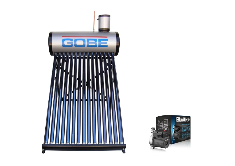 KIT S35 cu panou solar cu 20 tuburi pentru preparare apa calda menajera, rezervor nepresurizat 200 l GOBE + pompa ridicare presiune pentru panouri solare nepresurizate, corp din inox, BlauTech | 00700188 | 1.949,00 Lei | Panouri solare cu rezervor nepresurizat | Confort prin instalații de calitate | Melinda InstalSpecificații tehnice