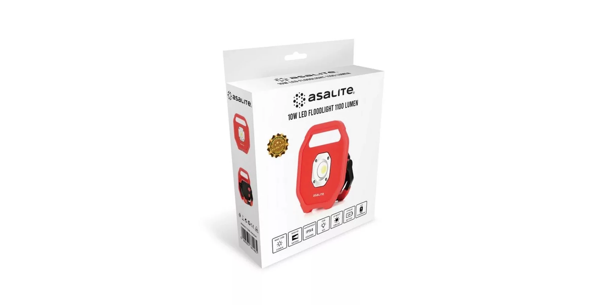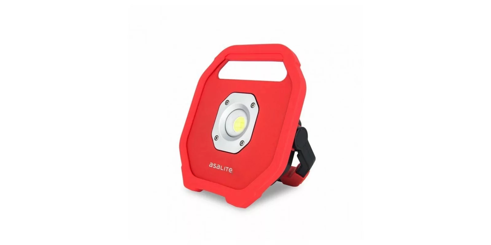 Lampa de lucru LED, 10 W, 1100 lm, ASAL0241 ASALITE cu acumulator împrăștie lumina la o distanță de iluminare de 50 de metri și are un timp de funcționare de până la 6 ore.