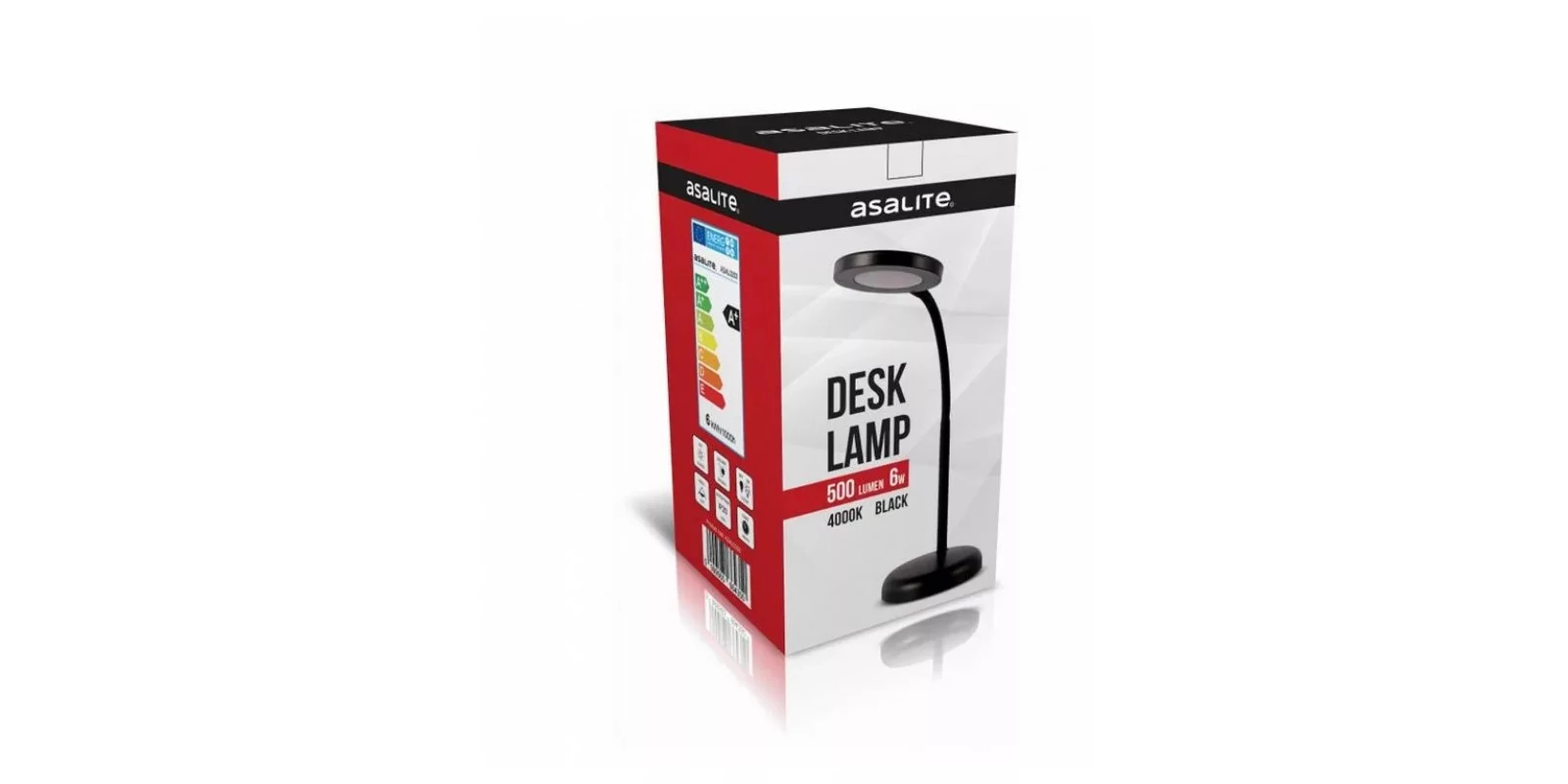 Lampa de masa LED, negru, 6 W, 4000K, 500 lm, ASAL0204 ASALITE cu temperatura de culoare a lămpii de masă cu LED ASALITE 6 W este de 4000 grade Kelvin, lumina fiind albă neutră. Produsul are un flux luminos extrem de mare de 500 Lumeni la o putere de 6 W. Cu dimensiunile sale de 137 x 400 mm poate fi amplasat în mod practic, necesarul său de spațiu fiind extrem de mic. Cablul de alimentare are o lungime de 2 m, produsul putând fi mutat cu ușurință, lucru facilitat și de greutatea sa mică de 0,46 kg. Unghiul de iluminare este de 120 de grade, fiind o alegere ideală pentru utilizare continuă pe termen lung. Gâtul cauciucat permite reglarea poziției lămpii.