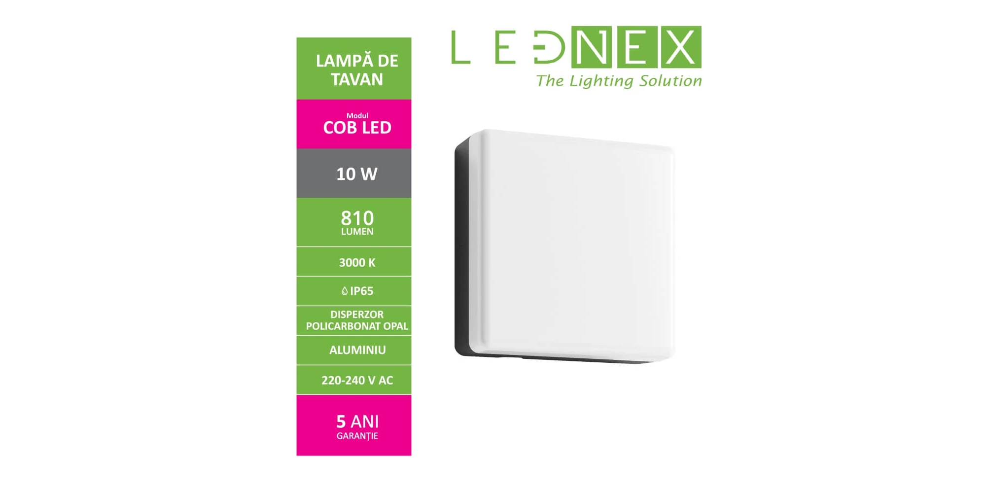 Prezentul articol Lampa de tavan LED, patrata, 10 W, 810 LM, IP65, LEDNEX, este alegerea perfectă din categoria Corpuri de iluminat cu LED, ceea ce înseamnă de asemenea Confort prin instalații de calitate | Melinda Instal | |