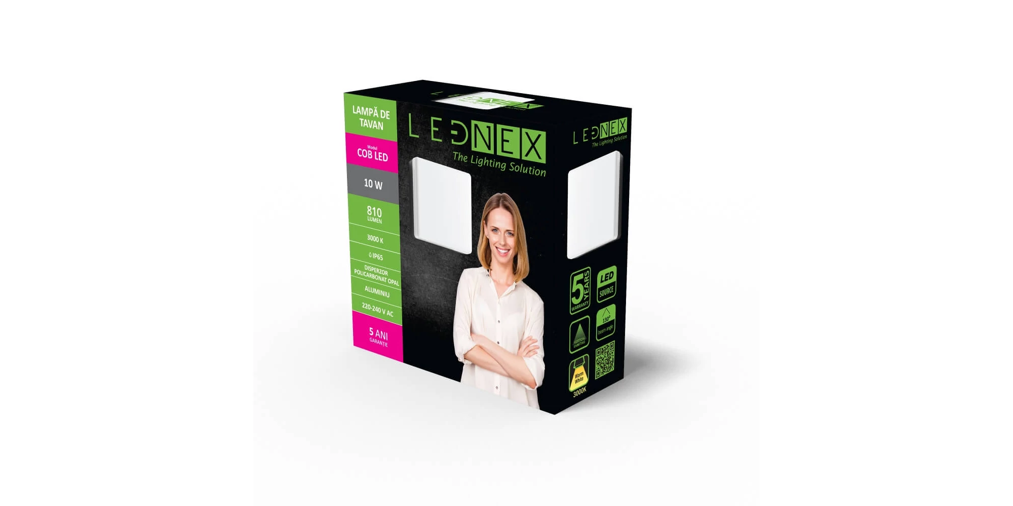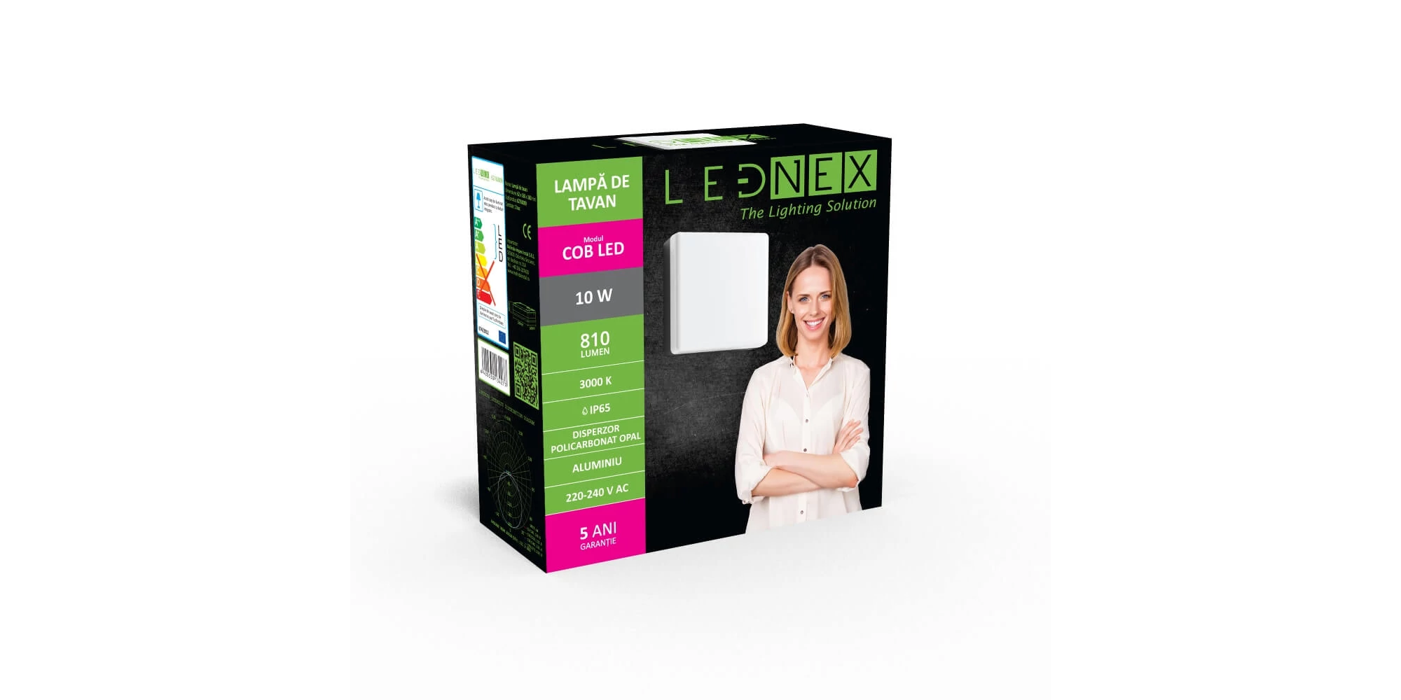 Lampa de tavan LED, patrata, 10 W, 810 LM, IP65, LEDNEX