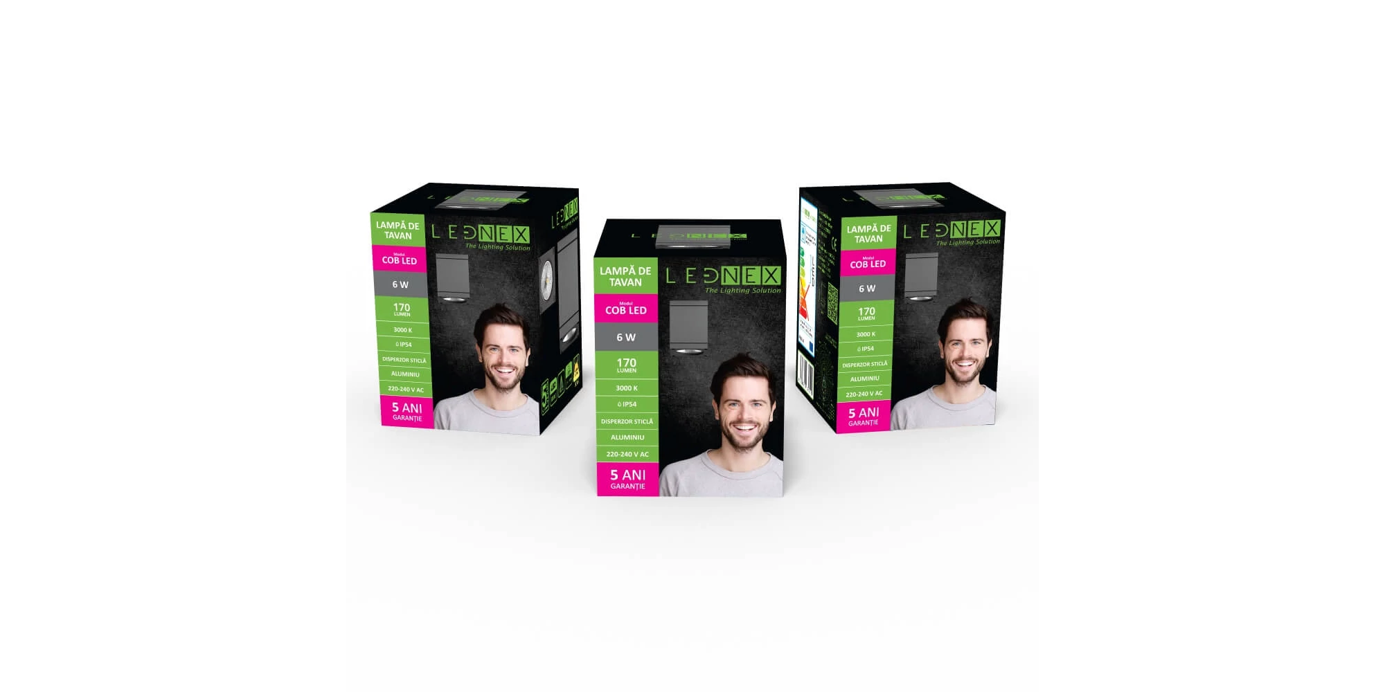 Lampa de tavan LED, patrata, 6 W, 170 LM, IP54, LEDNEX