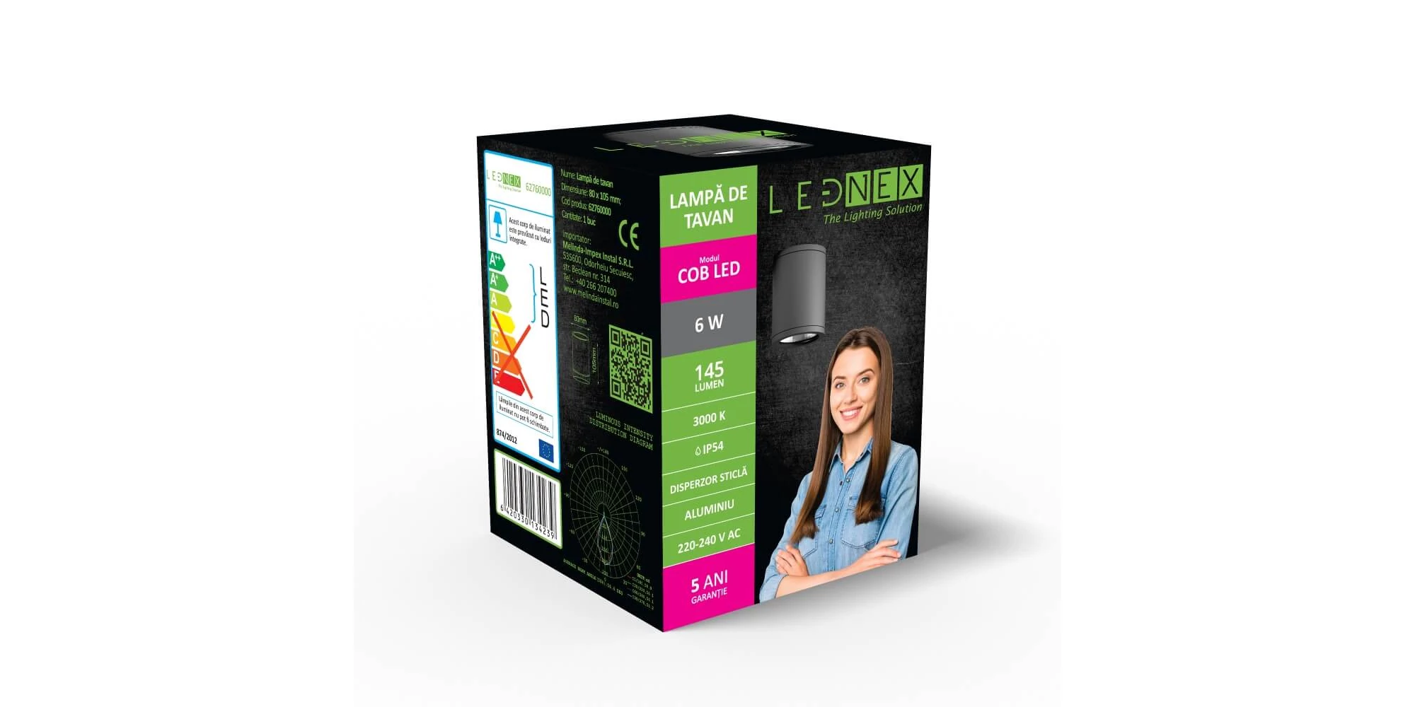 Lampa de tavan LED, rotunda, 6 W, 145 LM, IP54, LEDNEX