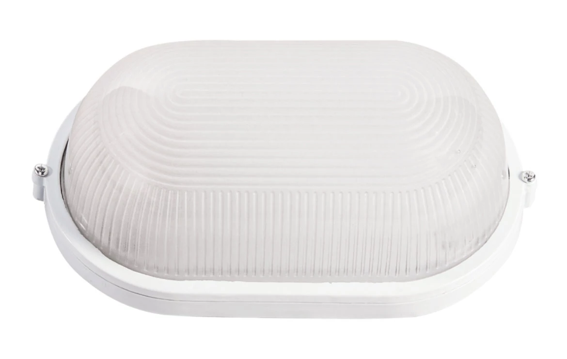 Lampă exterior 100 W oval alb pentru uz exterior 100 W. Tip dulie 1 x E27. Grad de protecție IP54. Se poate instala atât pe plafon cât și pe perete.
