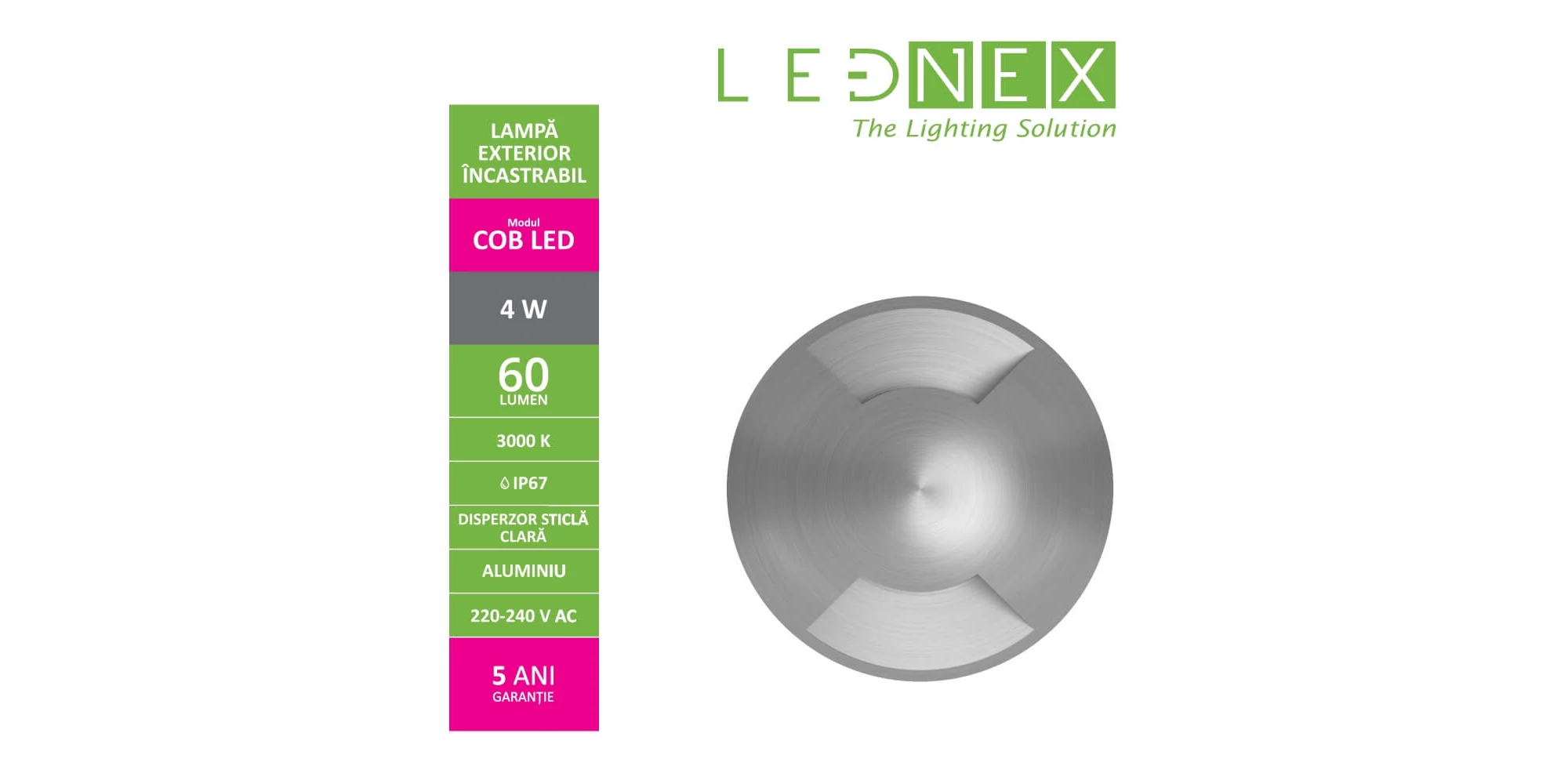 Lampa exterior incastrabila LED, 4 W, 60 LM, IP67, LEDNEX