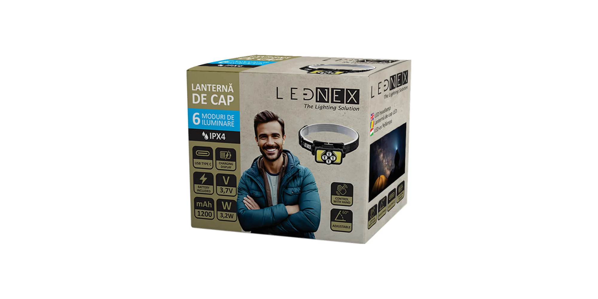 Descoperiți lanterna de cap reîncărcabilă 1200 mAh, LEDNEX, partenerul dumneavoastră de nădejde în aventurile în aer liber, gata să vă lumineze calea și să vă ofere libertatea de a bucura de activitățile preferate, indiferent de condiții. Cu o gamă impresionantă de caracteristici, această lanternă este proiectată să satisfacă cerințele riguroase ale celor care caută performanță și fiabilitate în mediul exterior.