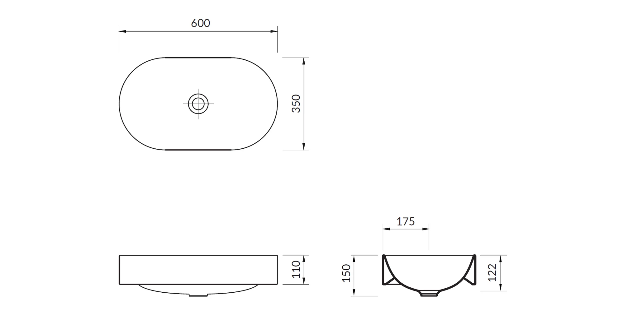 Lavoar montat pe blat, oval, 60 cm, Inverto, CERSANIT K671-009 | 20240499 | 1.928,99 Lei | Lavoar pentru dulap | Confort prin instalații de calitate | Melinda InstalSpecificații tehnice