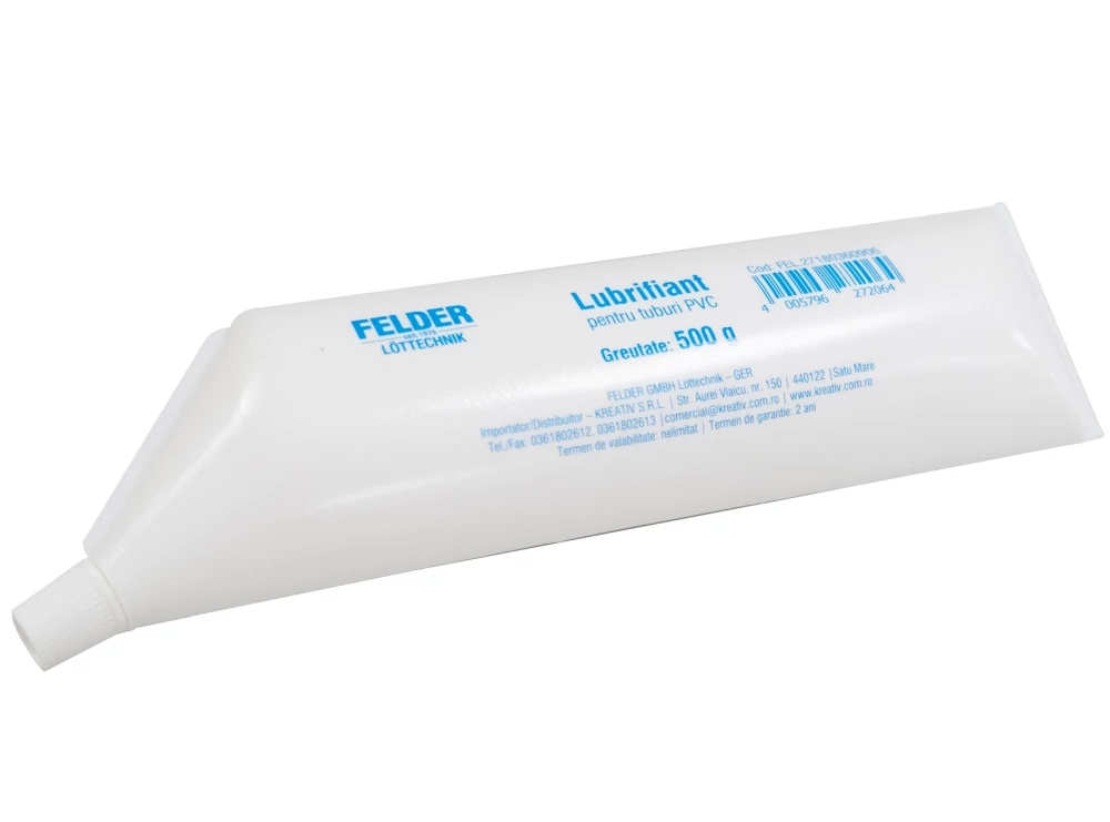 Lubrifiantul pentru țevi PVC, FELDER, 500 g este o substanță care ușurează introducerea mufelor al țevilor PVC. Lubrifiantul FELDER este fabricat în Germania. Este potrivit pentru toate țevile conectabile cu mufe și inel din cauciuc. Are efect de alunecare excelentă, nu se scurge, nu conține acizi și alcaline, nu irită pielea și este o substanță biodegradabilă.