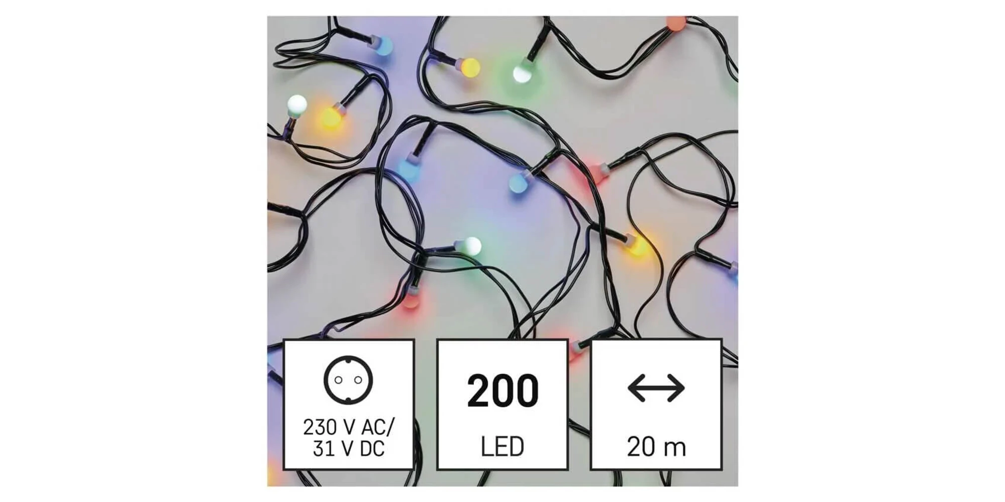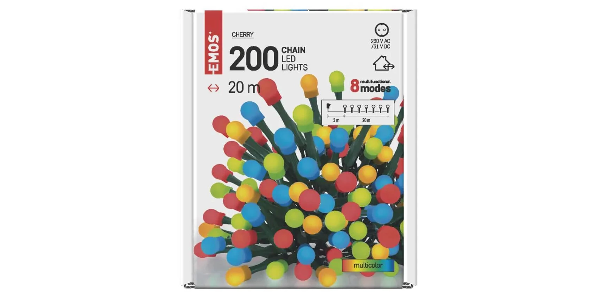 Lumini de Craciun cu LED-uri, cirese - bile, 20 m, exterior si interior, multicolor, programabil, 8 moduri, IP44, D5AM06, EMOS | 62930208 | 95,06 Lei | Decoratiuni de Craciun | Confort prin instalații de calitate | Melinda InstalSpecificații tehnice