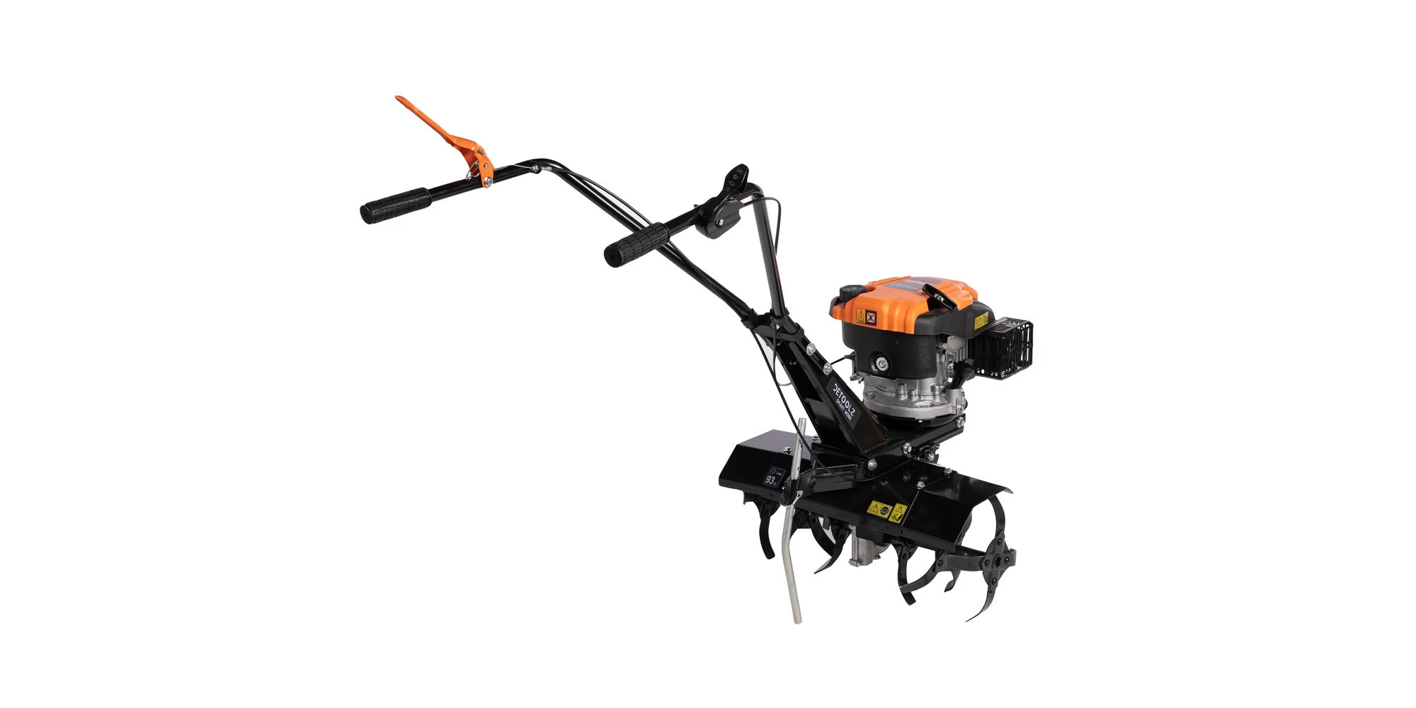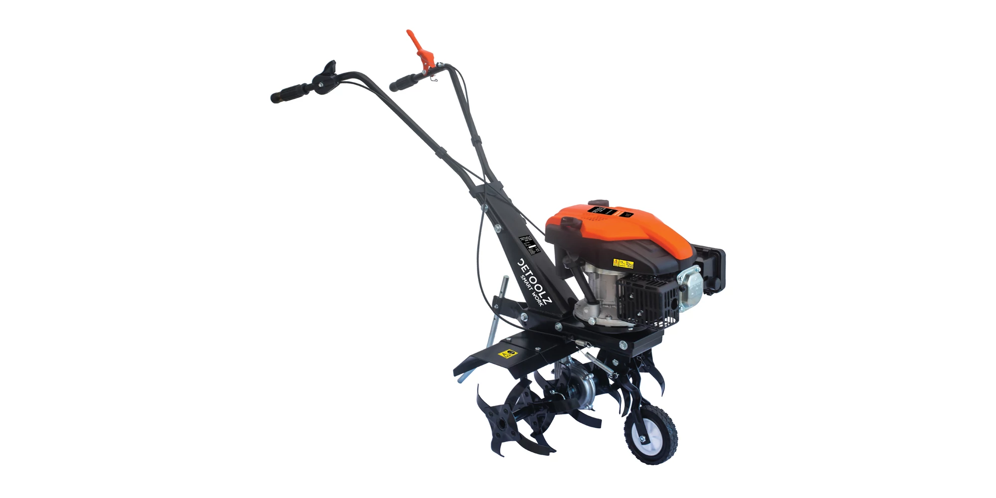 Motocultorul Detoolz este echipat cu un motor în 4 timpi, monocilindru, OHV, răcit cu aer forțat, care îți oferă fiabilitate și performanță constantă. Cu o turație de 2800 rpm, motorul dezvoltă o putere suficientă pentru a face față cu brio lucrărilor de arat, frezat sau bilonat pe terenuri diverse, de la câmpii la terenuri accidentate sau ușor înclinate. Consumul redus de carburant, de doar 1,5 l/h și rezervorul de ulei de 0,6 L îți asigură o autonomie sporită și costuri de operare scăzute.