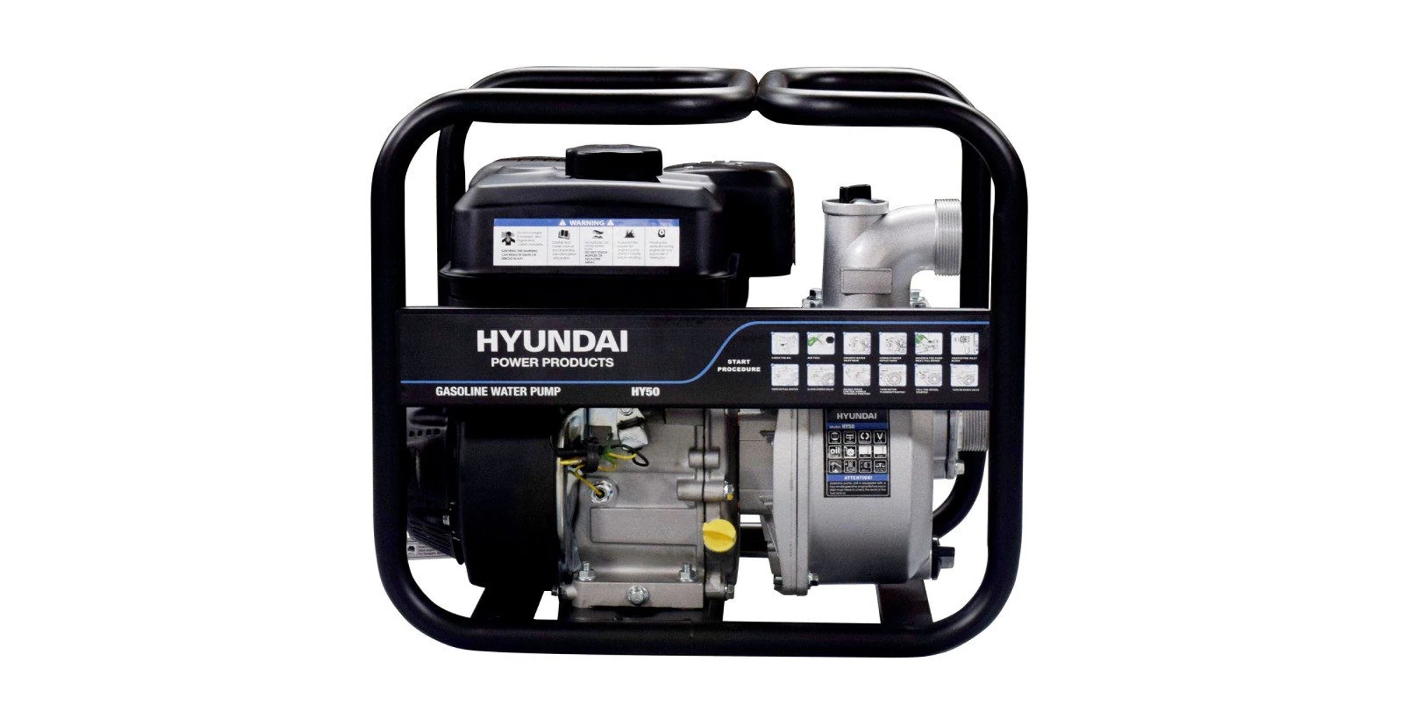 Motopompă pentru apă curată, 2", HY50, HYUNDAI are motor în patru timpi Hyundai IC160, de 5,5 CP, senzor lipsă ulei, corp pompă din aliaj ușor de aluminiu, inoxidabil, turnat sub presiune. Pompa este cu deschidere frontală, ușor de desfăcut pentru curățare și mentenanță. Are etanșare mecanică de înaltă calitate. Cadru robust pentru protecție și transport dotat cu amortizoare de cauciuc pentru reducerea vibrațiilor.