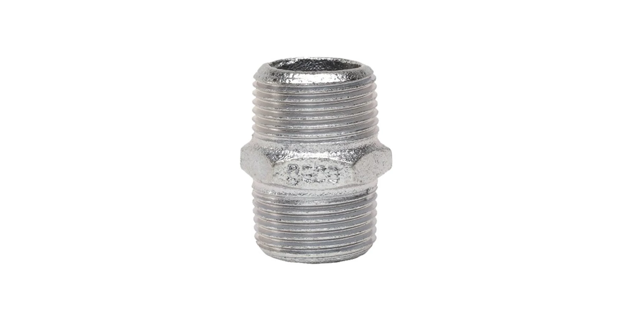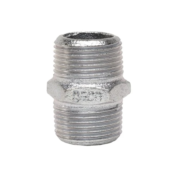 Niplu din fontă zincată de 2", cu filet exterior-exterior, GEBO Platinum pentru îmbinarea țevilor filetate.