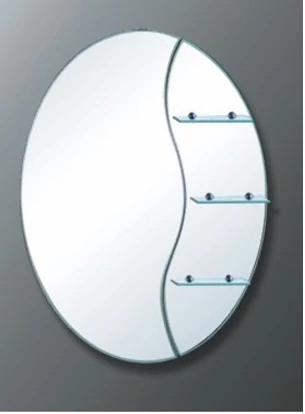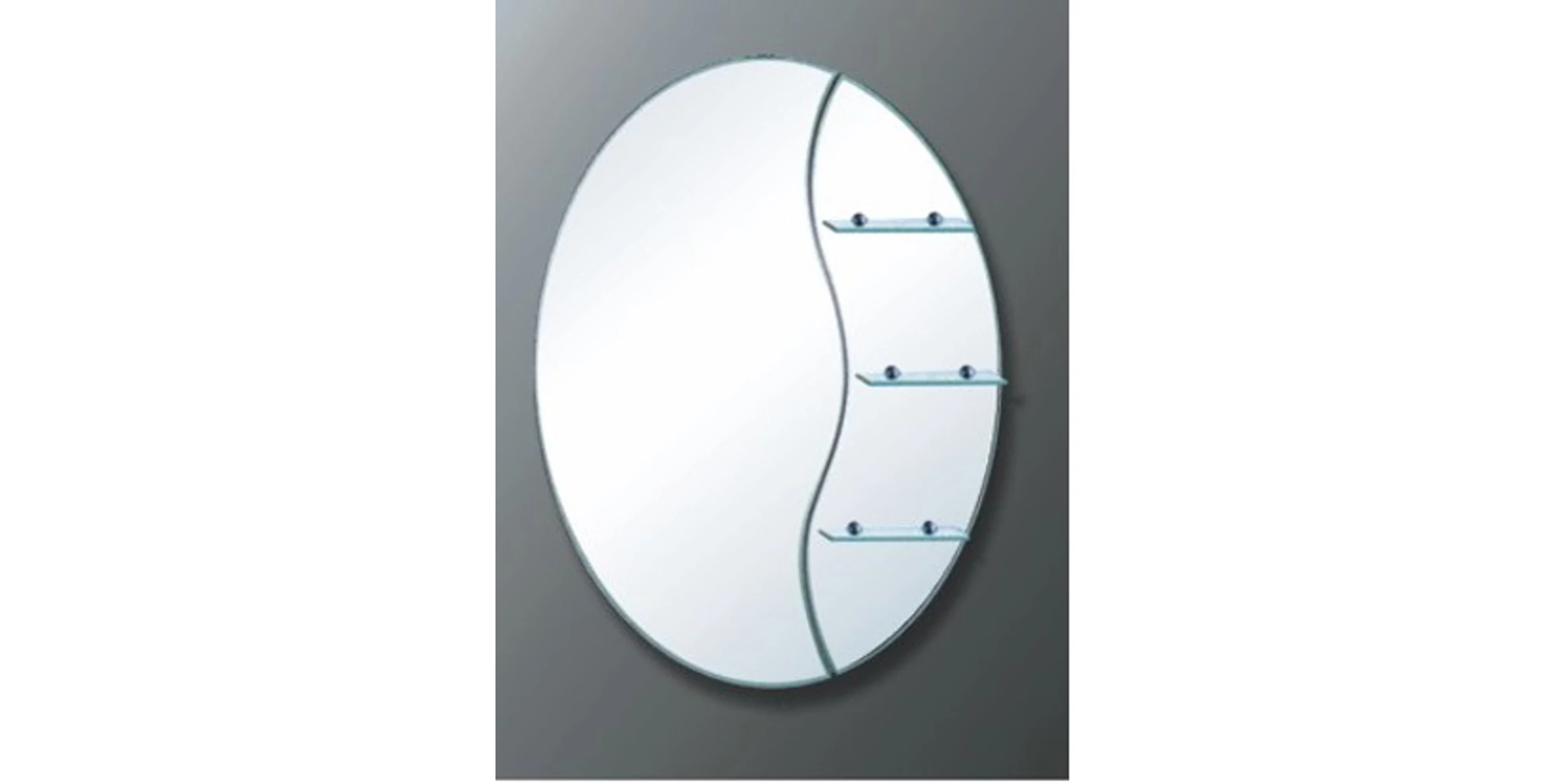 Forma sa ovală, combinată cu liniile curbe care separă zona oglinzii de etajere, îi oferă un design modern, fluid și elegant. Este un obiect care se integrează firesc în orice decor: clasic, minimalist sau contemporan.