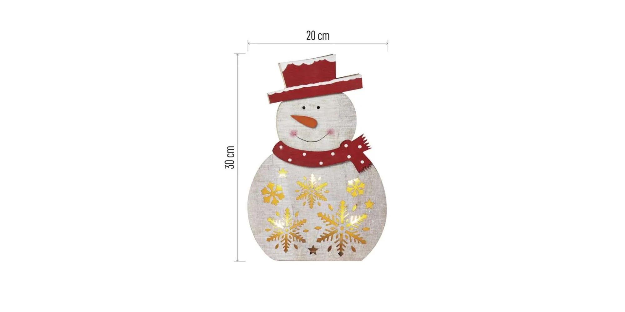 Descoperiți magia sărbătorilor cu Om de zăpadă cu LED, decorațiune de Crăciun, lemn, 30 cm, baterii 2 x AA, interior, alb cald, temporizator, DCWW07, EMOS. Această adorabilă figurină din lemn, cu o înălțime de 30 cm, emană o lumină albă caldă și plăcută datorită celor 5 LED-uri strălucitoare. Alimentat de 2 baterii AA, omul de zăpadă poate fi plasat oriunde în casă, aducând farmecul sărbătorilor. Funcția de temporizare inteligentă permite iluminarea continuă timp de 6 ore, urmată de o pauză de 18 ore. Fabricat de EMOS Lighting, acest ornament durabil din lemn oferă o atmosferă festivă și bucurie în fiecare colț al casei tale. Prezentul articol Om de zapada cu LED, decoratiune de Craciun, lemn, 30 cm, baterii 2 x AA, interior, alb cald, temporizator, DCWW07, EMOS, este alegerea perfectă din categoria Decoratiuni de Craciun, ceea ce înseamnă de asemenea Confort prin instalații de calitate | Melinda Instal |
