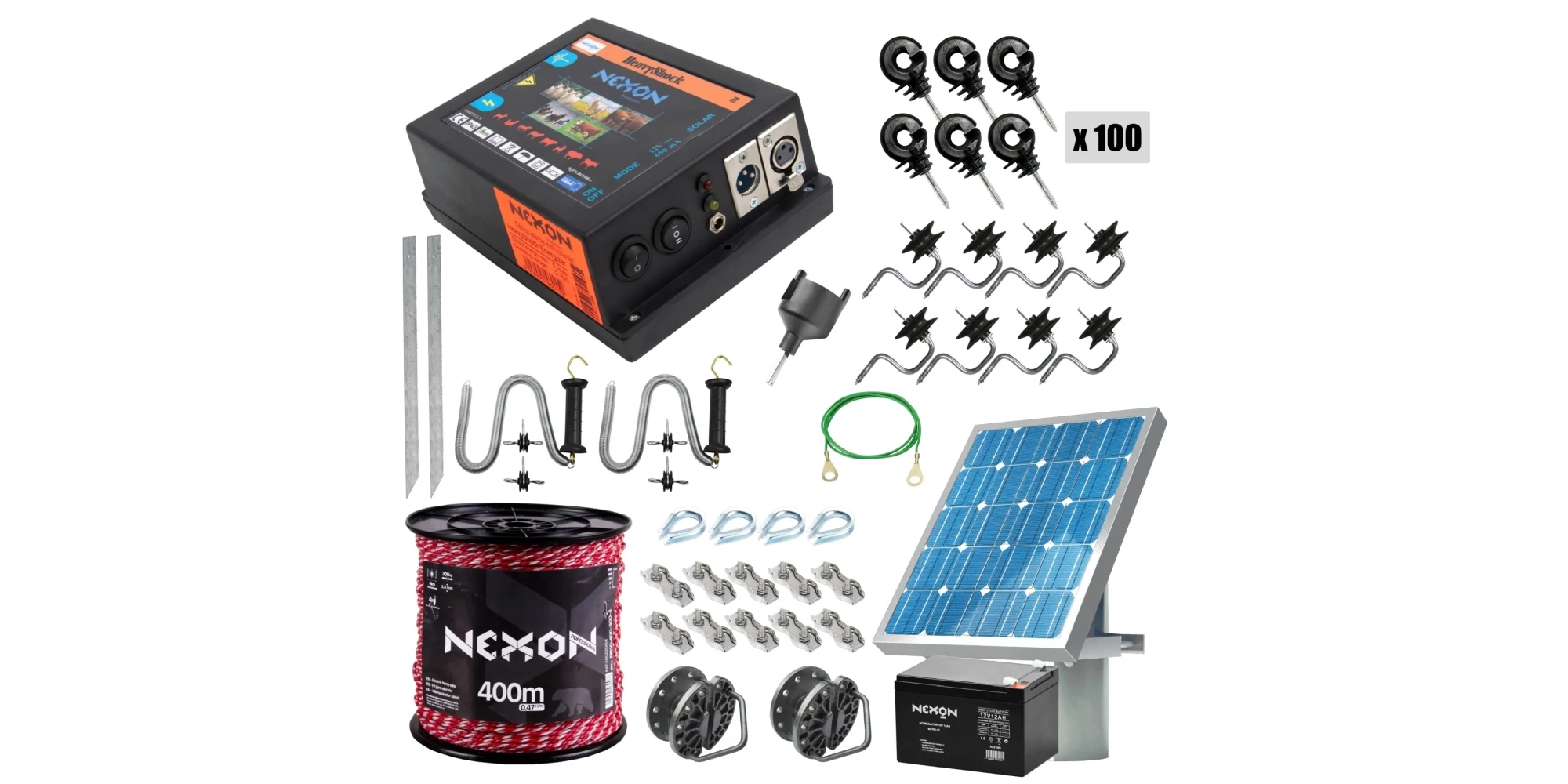 Pachet complet gard electric NEXON HeavyShock PRO 5J cu solar și baterie, 400m – Protecția completă a terenului și animalelor tale